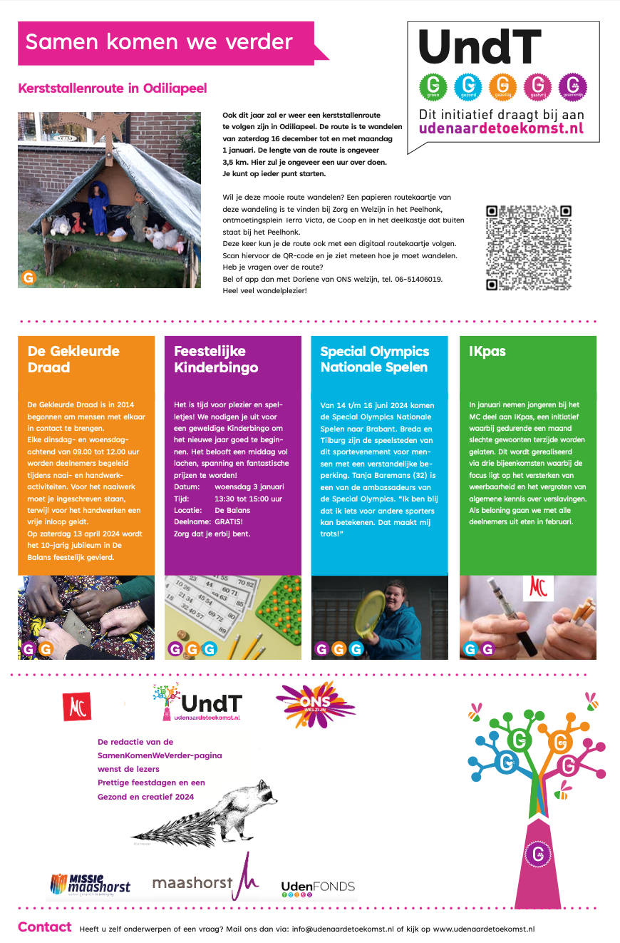 De december editie van de samenkomenweverder pagina in het Udense weekblad is uit!