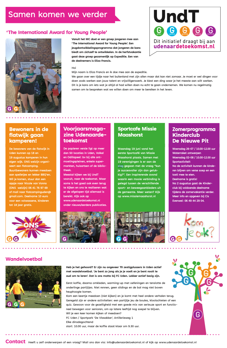 De juli editie van de samenkomenweverder pagina in het Udense weekblad is uit!