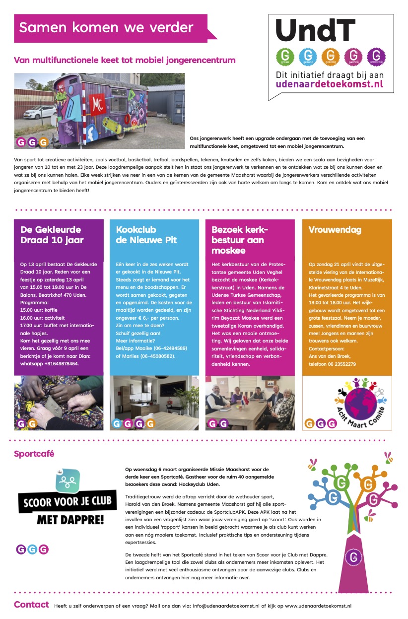 Bekijk grotere afbeelding SamenKomenWeVerder pagina maart 2024 De maart editie van de samenkomenweverder pagina in het Udense weekblad is uit! Bekijk hier de editie en hier eerdere edities. Door Ferry Groenendijk|2024-03-27T15:44:13+01:00maart 27th, 2024|Nieuws|0 Reacties Share This Story, Choose Your Platform! FacebookXLinkedInPinterest Gerelateerde berichten Uitnodiging d’n Hof van de Toekomst Gallery Uitnodiging d’n Hof van de Toekomst december 5th, 2025 | 0 Reacties Kerstpakketten gevraagd voor de ‘Ik geef, ik neem’-kast Gallery Kerstpakketten gevraagd voor de ‘Ik geef, ik neem’-kast december 5th, 2025 | 0 Reacties Halloweentocht Uden-Zuid Gallery Halloweentocht Uden-Zuid november 9th, 2025 | 0 Reacties Vlucht Vooruit in de media Gallery Vlucht Vooruit in de media oktober 28th, 2025 | 0 Reacties 5-11 Evenement Vlucht Vooruit Gallery 5-11 Evenement Vlucht Vooruit oktober 28th, 2025 | 0 Reacties