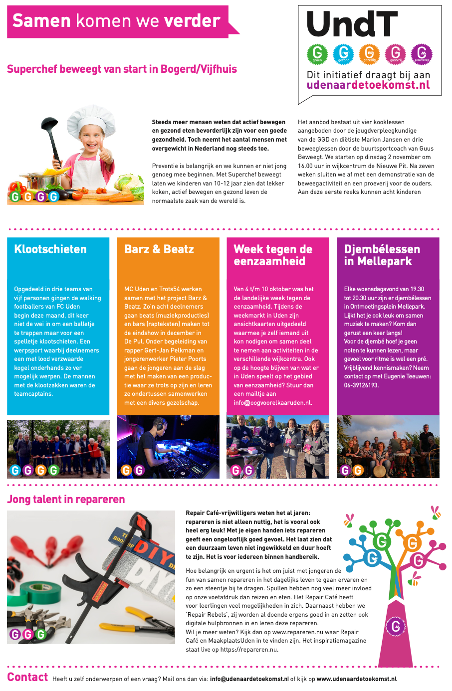 Bekijk grotere afbeelding Samenkomenweverder pagina oktober 2021 De oktober editie van de ‘samen komen we verder’ pagina in het Udens Weekblad is uit! Bekijk hier de editie en hier eerdere edities. Door Ferry Groenendijk|2021-11-04T13:09:09+01:00oktober 27th, 2021|Nieuws|0 Reacties Share This Story, Choose Your Platform! FacebookXLinkedInPinterest Gerelateerde berichten Uitnodiging d’n Hof van de Toekomst Gallery Uitnodiging d’n Hof van de Toekomst december 5th, 2025 | 0 Reacties Kerstpakketten gevraagd voor de ‘Ik geef, ik neem’-kast Gallery Kerstpakketten gevraagd voor de ‘Ik geef, ik neem’-kast december 5th, 2025 | 0 Reacties Halloweentocht Uden-Zuid Gallery Halloweentocht Uden-Zuid november 9th, 2025 | 0 Reacties Vlucht Vooruit in de media Gallery Vlucht Vooruit in de media oktober 28th, 2025 | 0 Reacties 5-11 Evenement Vlucht Vooruit Gallery 5-11 Evenement Vlucht Vooruit oktober 28th, 2025 | 0 Reacties