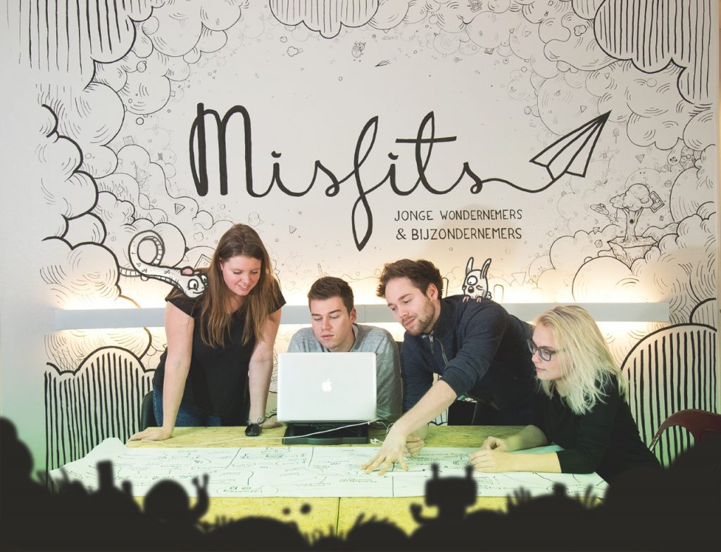 Zoveel jong talent. Jonge creatieve geesten met ondernemingskracht. Al tijdens hun opleiding zijn ze bezig met hun toekomst in het werkveld. Geen uitzicht op een vaste baan, of welke baan dan ook. Je zou er bijna de moed door op geven. Misfits doen dit niet. Ze zoeken naar een andere manier om bij te dragen aan de maatschappij en het werkveld. Hun creativiteit en ondernemingskracht geeft hen de energie om zelf een onderneming op te willen zetten. Ze hebben alleen geen kapitaal, geen plek en geen stappenplan om hun droom vorm te geven. Toch zijn het er een heleboel die hier mee bezig zijn. Allemaal lopen ze tegen de zelfde obstakels aan. Geen geld om een ruimte te huren, via internet vaak niet vindbaar in het grote aanbod, geen idee hoe te beginnen en waar aan te kloppen, ga zo maar door.