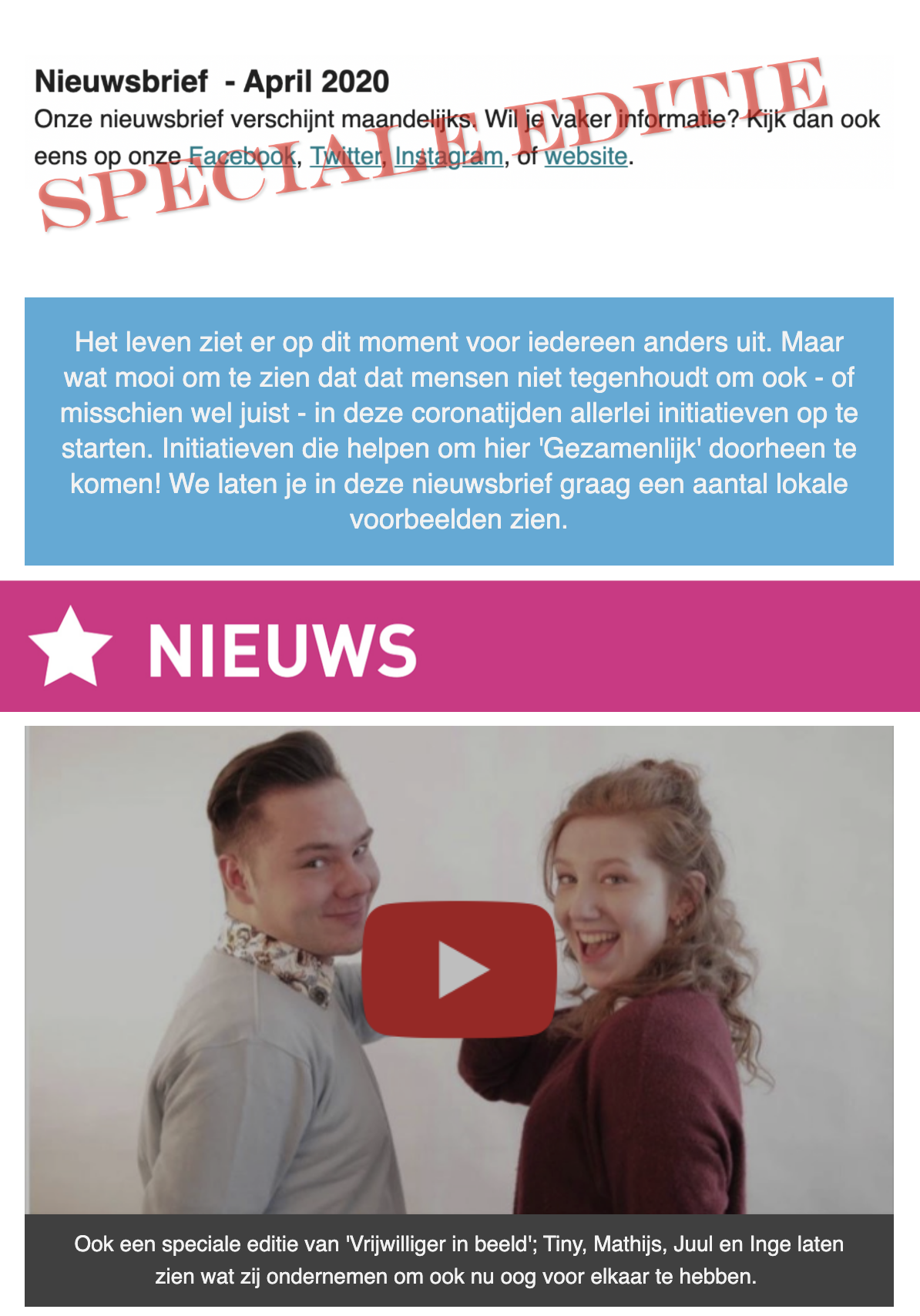 Het leven ziet er op dit moment voor iedereen anders uit. Maar wat mooi om te zien dat dat mensen niet tegenhoudt om ook – of misschien wel juist – in deze coronatijden allerlei initiatieven op te starten. Initiatieven die helpen om hier ‘Gezamenlijk’ doorheen te komen! We laten je in onze speciale editie nieuwsbrief graag een aantal lokale voorbeelden zien.