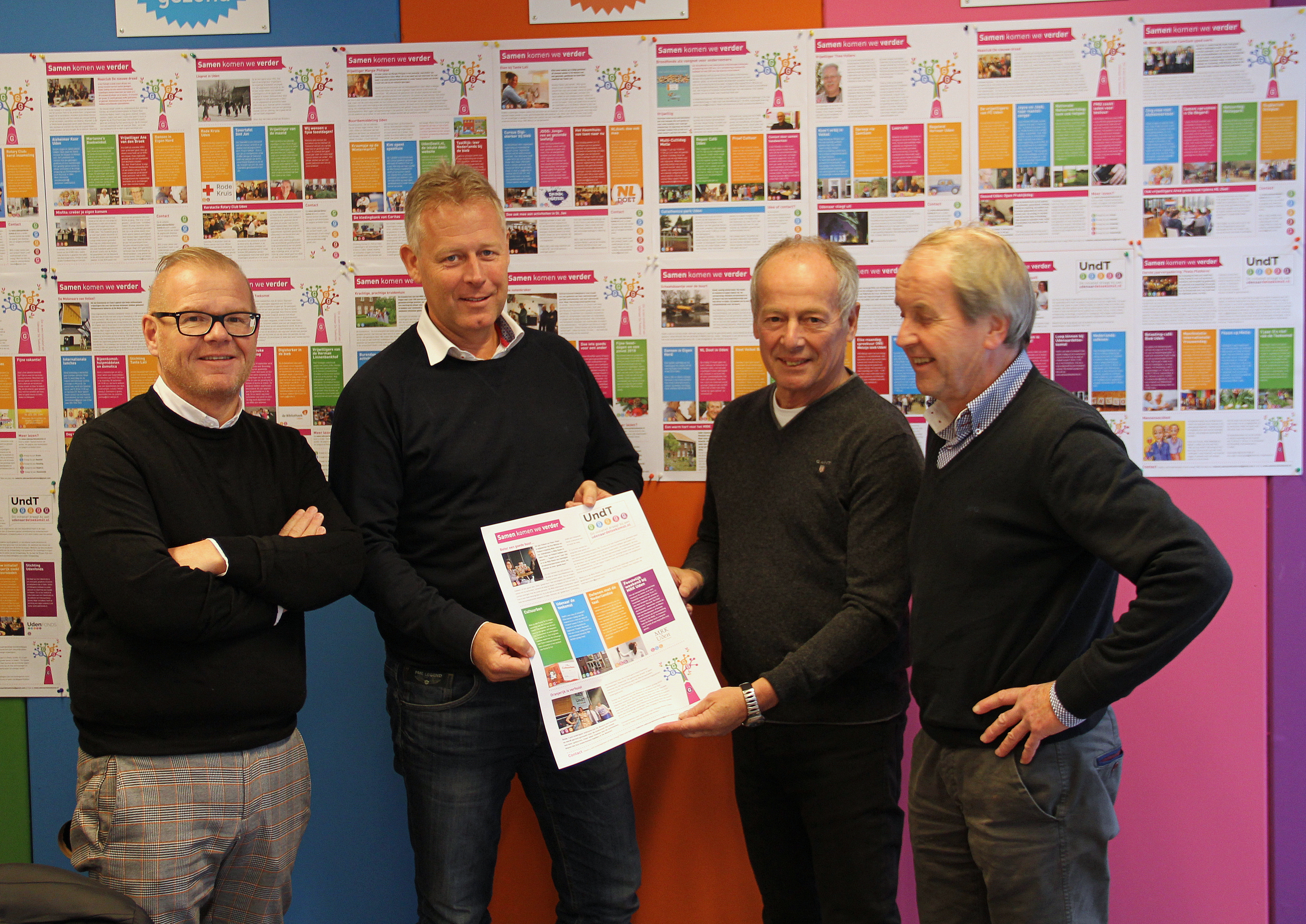 De redactie van de pagina “Samen komen we verder” is erg verheugd dat na het plotselinge stopzetten van de Mooi Uden Krant, de pagina toch weer gaat verschijnen. Het Udens Weekblad gaat nu maandelijks deze “vrijwilligers” informatie pagina in het weekblad opnemen. We zijn erg blij dat hiermede de mogelijkheid wordt gegeven om initiatiefrijke inwoners uit Uden weer in de” spotlight” te zetten. De lokale verbinders functie tussen inwoners (UndT)- de gemeente en- de lokale media is zodoende weer hersteld. Het eerste exemplaar werd door UdenaardeToekomst overhandigd aan de heren Jeroen van der Horst en Erik Kerkhof van Uitgeverij Talvi. Op naar een mooie samenwerking.